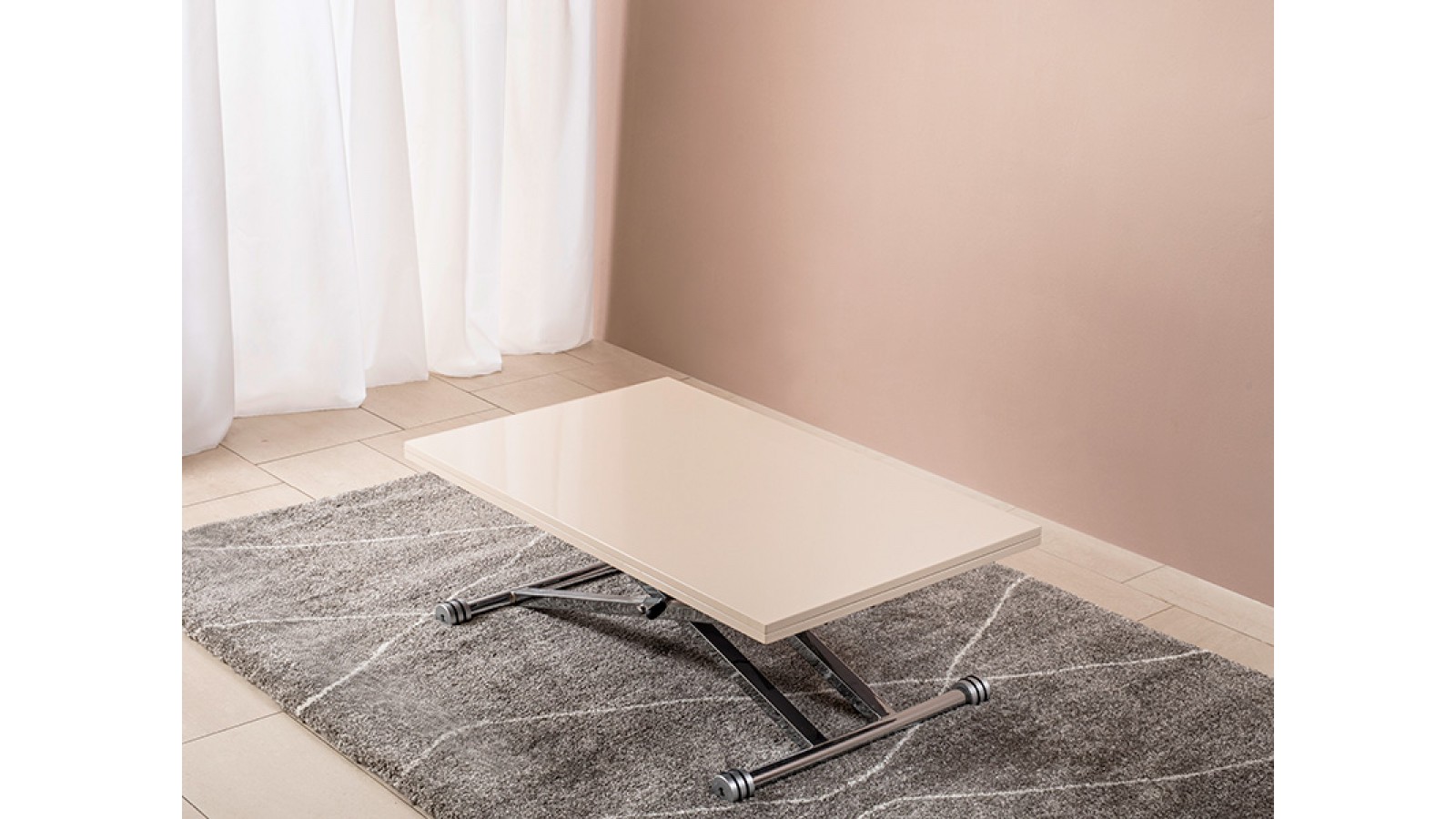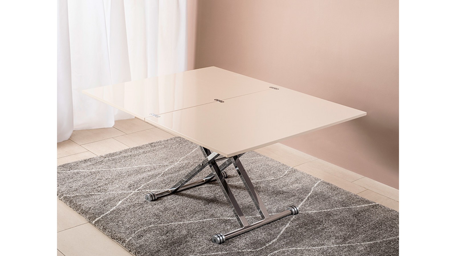 Разтегателна трапезарна/холна маса с регулируема височина с метална основа и плот от MDF.