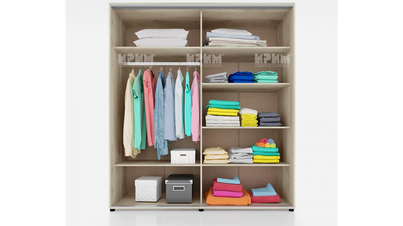 - гардероб с плъзгащи врати с размери: 1800/595/2025мм.