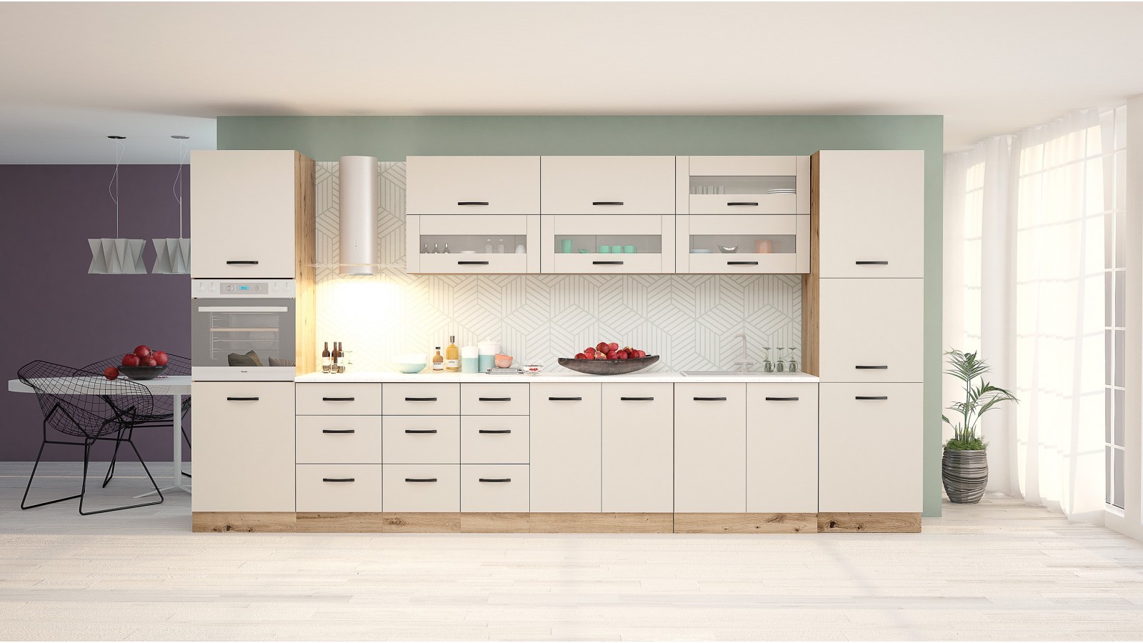 Стилна модулна кухня Лорен с лице МДФ 18мм.Голямо разнообразие от модули,вгрдени оцедници и кошници,газови амортисьори,рейлинг са само част от предимствтата и.