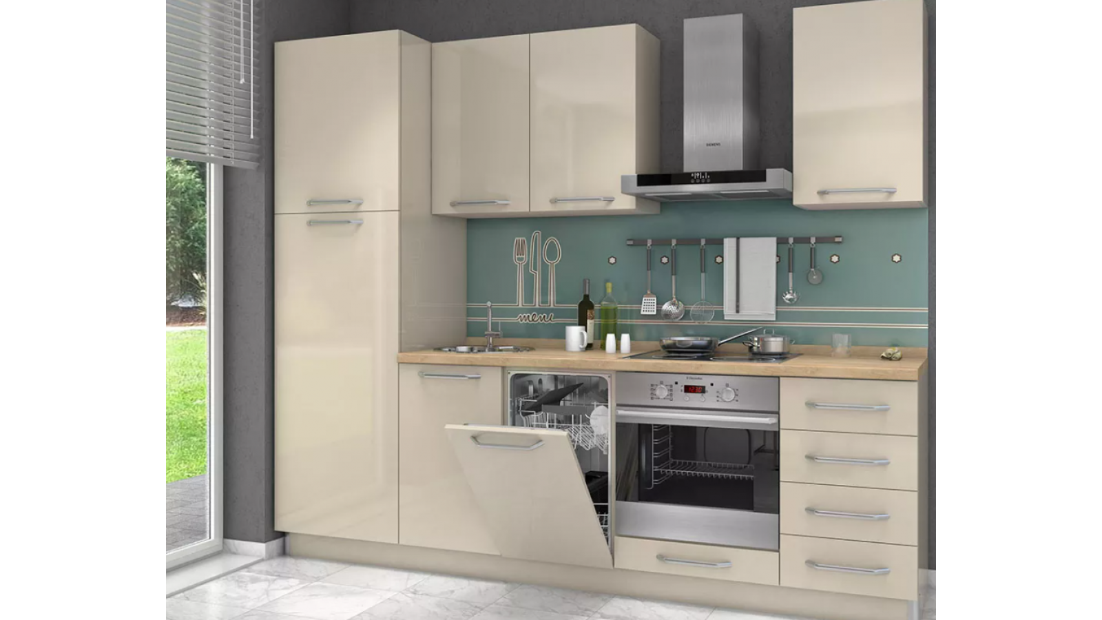 *Кухнята се предлага с три височини на горните шкафове- 55см, 72см, 91см.