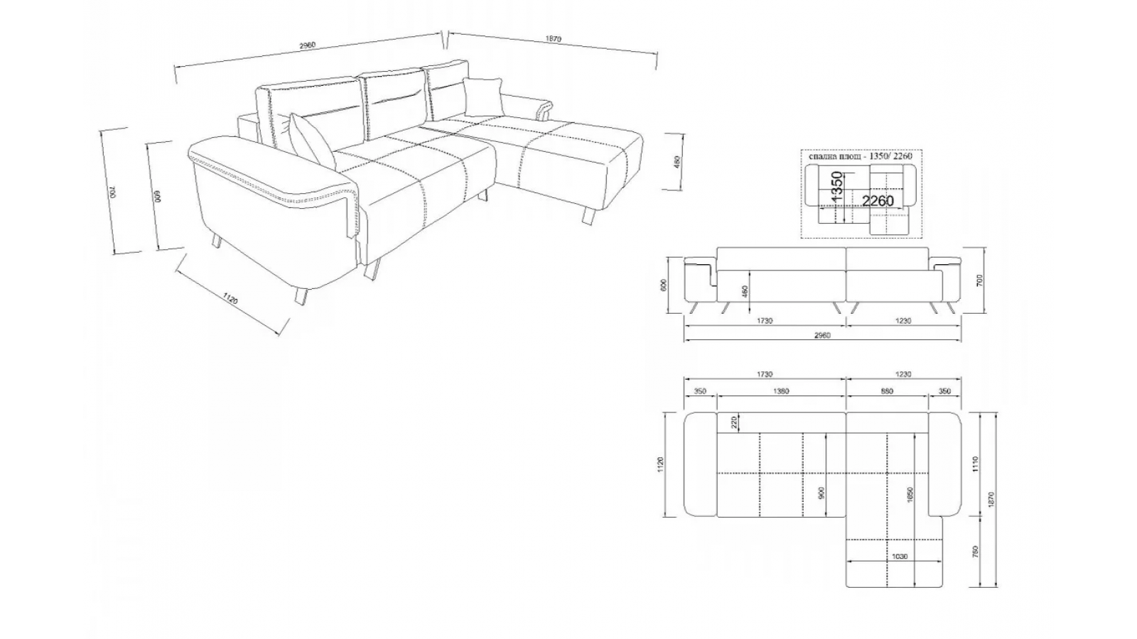 - Площ за сън- 135/226см