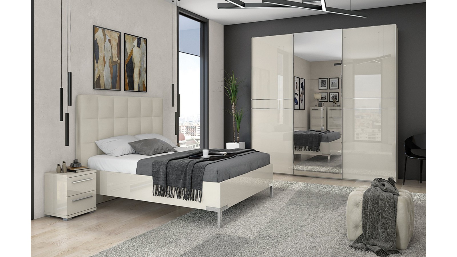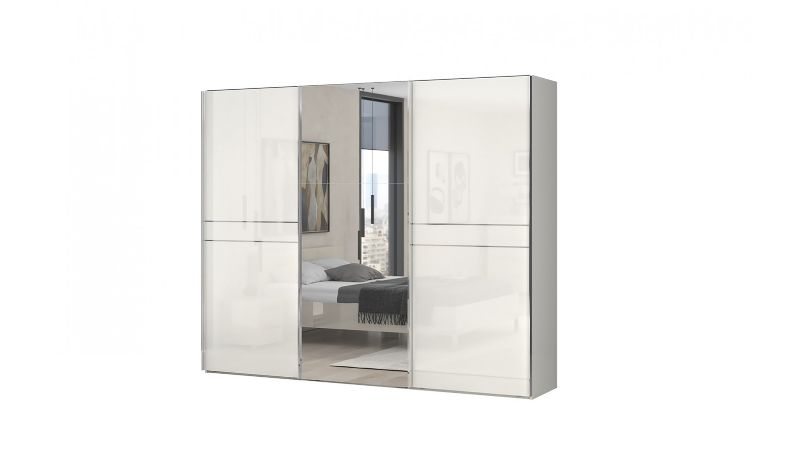 Гардеробът е с плъзгащи врати - 2 гланцови с UV лак, 1 бр с огледало