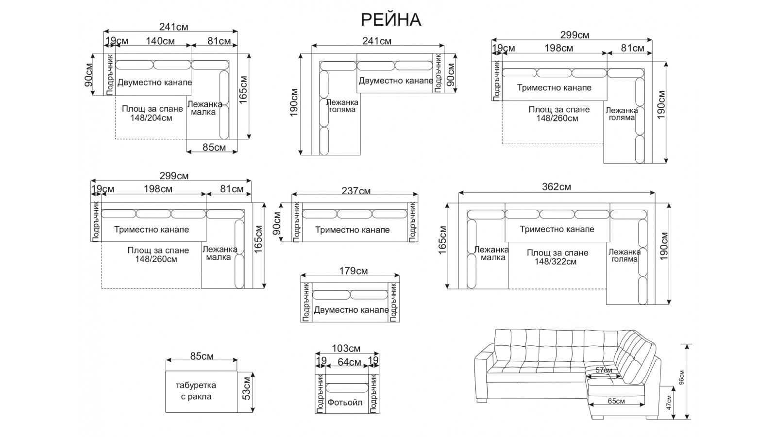калъфи и пълнеж от силиконов и полиуретанов пух. Модел „Рейна“ предлага и